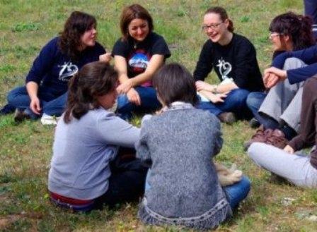 reunión de amigos que quieren ser santos. Invocando la